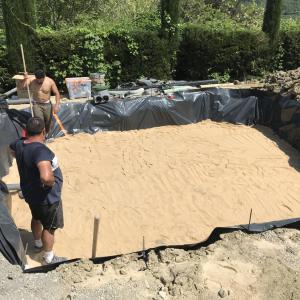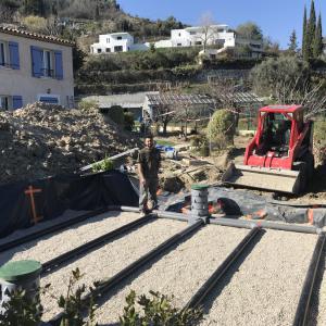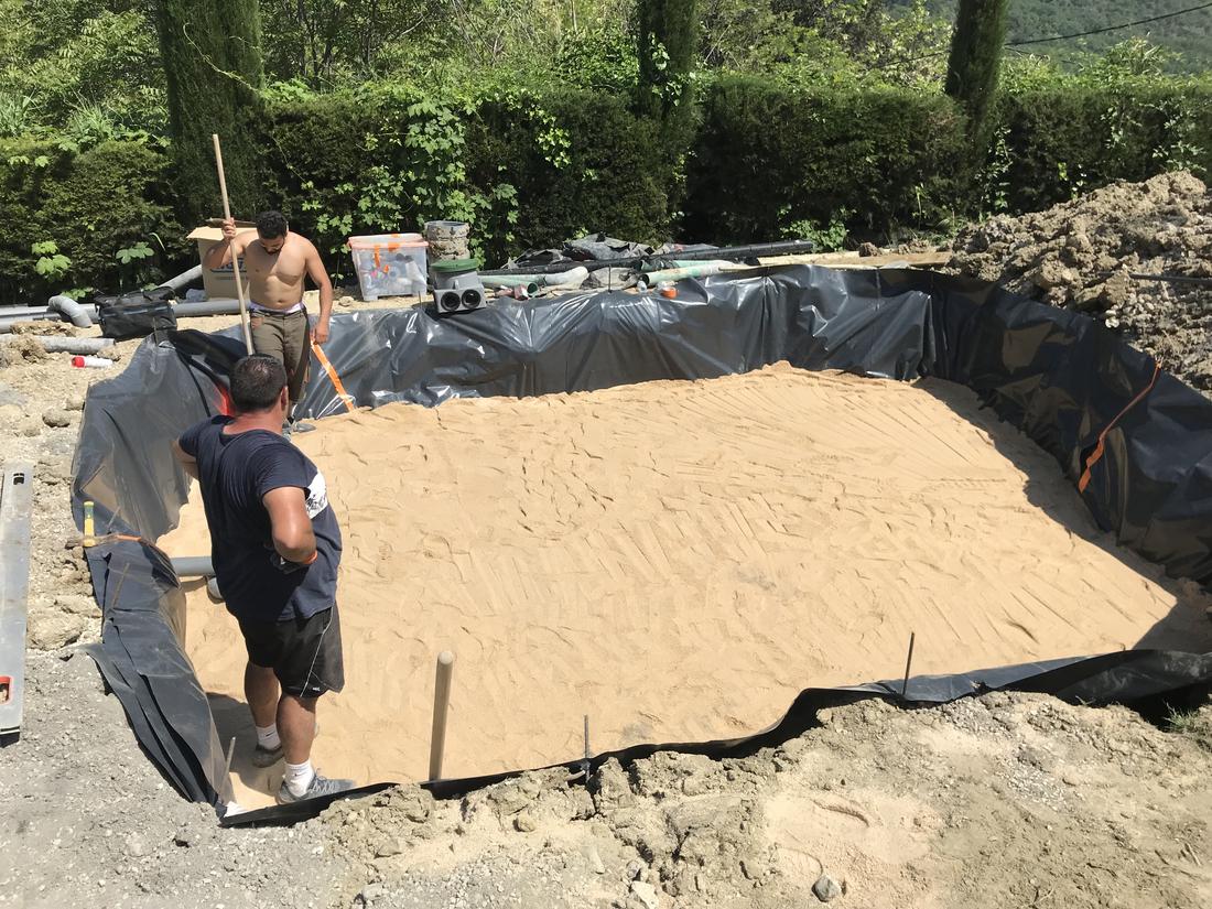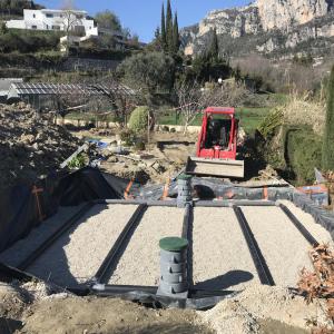 Nous nous déplaçons sur des chantiers de construction de piscine à 100 km de la ville d' Avignon, Les Angles.